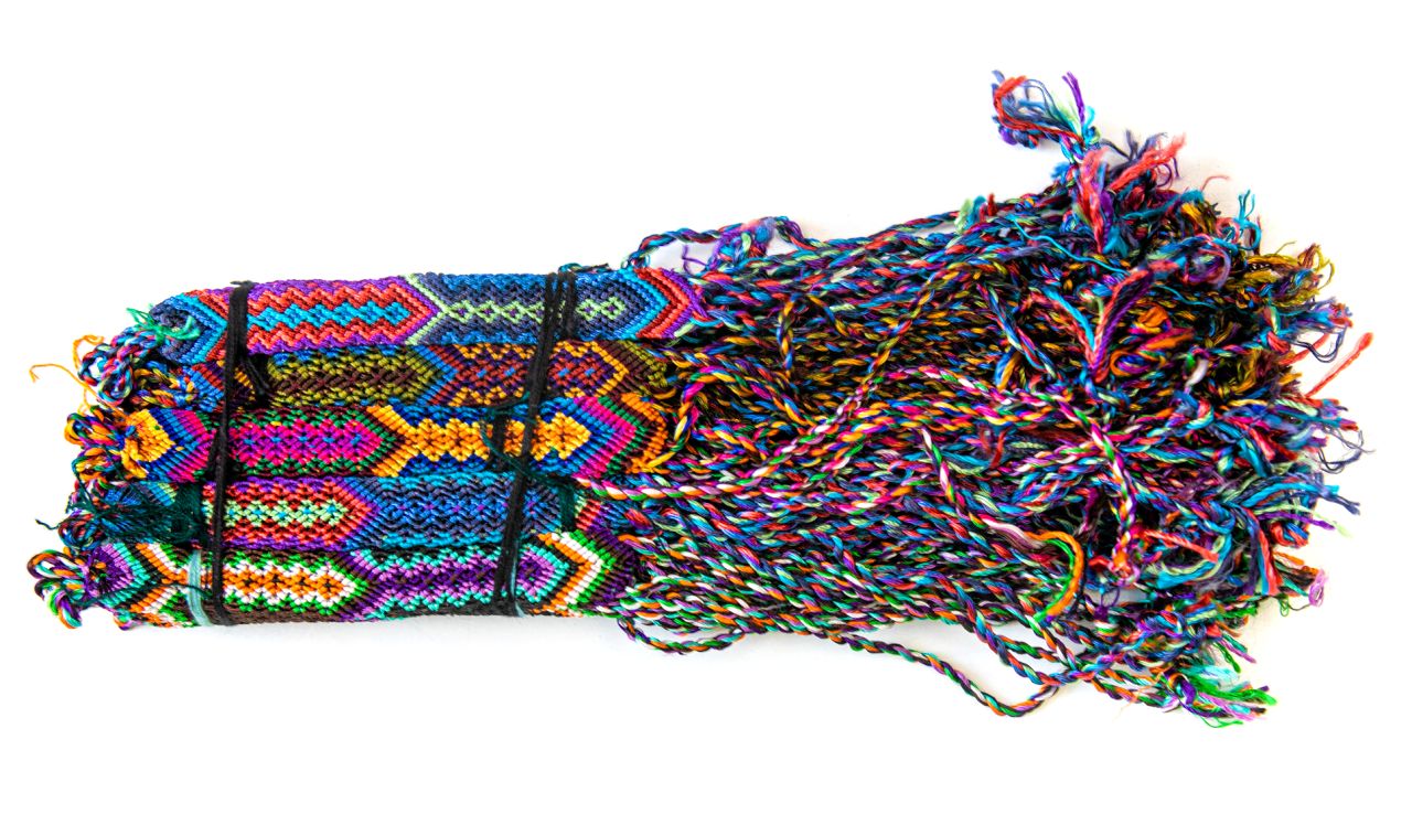 Mit handgearbeiteten Freundschaftsbändchen sind Sie gut zu Ihrem eigenen Gefühl zu dem, was Sie tragen und zu den Damen in Guatemala, die die Bändchen in Heimarbeit herstellen. Oft brauchen wir recht große Mengen davon, da wir auch Veranstaltunger und Geschäfte damit ausstatten. So sind die Frauen immer gut beschäftigt und können beim abendlichen Nachrichtenaustausch auf dem Dorfplatz immer beim Knüpfen noch etwas zu ihrer gewöhnlichen Landarbeit dazu verdienen. Nach vielen Jahren Übung arbeiten die Frauen so schnell, dass man ihre Finger nur noch "fliegen" sieht. So sind Sie zwar recht schnell mit dem Bändchen fertig, müssen danach aber noch den unteren Abschluss drehen und die Bändchen in kleine Pakete mit gleichem Muster zusammen zählen. Sobald eine bestimmte Menge zusammen gekommen ist, werden die Freundschaftsbänder von unserer Speditionsfirma bei den Frauen abgeholt und eingelagert, bis wir sie nach Deutschland kommen lassen.Die Farben der Freundschaftsbändchen